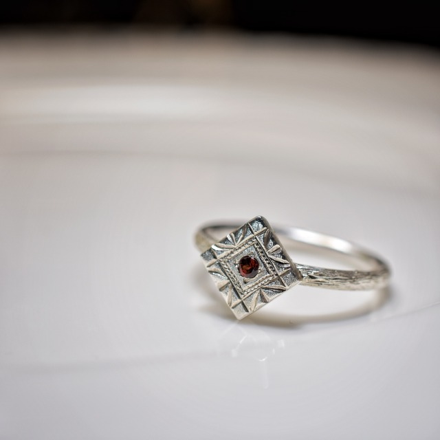 ご覧頂きありがとうございます。 こちらは木の様な質感のラウンドフォルムのアームで指当たりが優しいバースデイリングでございます。 センターストーンを各誕生石からお選び頂けます。 1月:ガーネット(友愛) 2月:アメシスト(心の平和) 3月:アイオライト(誠実) 4月:モルガナイト(清純) 5月:エメラルド(幸運) 6月:ロイヤルブルームーンストーン(健康) 7月:ルビー(熱情) 8月:ペリドット(夫婦の幸運) 9月:サファイア(慈愛) 10月:トルマリン(安楽) 11月:シトリン(友情) 12月:ブルージルコン(生命力) 一人の彫金師がデザインから仕上げまで直接金属を加工する昔ながらの製法でお造りしています。 素材となる混じり気のない純銀を溶かし、時間をかけて叩き延ばして形作ります。 身体の一部の様に着け心地を良くするためにリングの内側の加工には細心の注意を払っています。 表記のないリングサイズ(1号以下など)に関しても0.5号刻みでお造りしていますのでご遠慮なくお申し付けください。 素材:SV1000 リング幅:トップ部約10mm リング幅約2mm リングサイズ:6〜16号の0.5号刻み 半号(0.5号)をご希望の方はお気軽にお問い合わせ下さい。 ※ご注文頂いてからの製作になりますので発送までに7日程頂いております。 完全手造りの為、リングサイズによっては多少画像と見え方が異なる場合がありますのでご了承下さい。 また、天然石を使用している為、色味やカットに個体差があります。 こちらの商品はオリジナルのポーチに入れての発送になります。